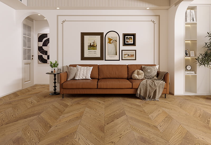 Tuo ajattoman tyylikkyyden sisätiloihin Itä -Euroopan harjaamassa Chevron -suunnittelussa puulattialla. Klassisen chevron -kuvion mukana tämä lattia lisää hienostuneen, geometrisen suunnittelun, joka sopii sekä nykyajan että perinteisiin tiloihin. Harjattu pinta parantaa puun luonnollista tekstuuria, mikä antaa sille koskettavan, hienostuneen ilmeen, joka lisää syvyyttä ja luonnetta lattiaan. ABC-luokan valmistettuna tämä lattia tarjoaa poikkeuksellisen kestävyyden, mikä tekee siitä loistavan valinnan korkean liikenteen alueille sekä asuin- että kaupallisissa tiloissa. UV-lakapäällyste ei vain suojaa puuta, vaan tuo esiin myös luonnollisen kauneuden, säilyttäen puun ulkonäön varmistaen samalla pitkäaikaisen suorituskyvyn. Kiiltotaso 7 ± 2 ° tarjoaa hienovaraisen, hienostuneen kiilton, joka tarjoaa tasapainon matta- ja kiiltävän viimeistelyjen välillä hyvälle, tyylikkäästä kosketuksesta. Se on monipuolinen muotoilu yhdistettynä korkealaatuiseen viimeistelyyn, tekee siitä ihanteellisen lattiavalinnan kutsun, tyylikkään ympäristön luomiseen.